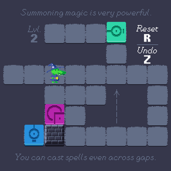 You are a lizard, who is also a wizard. You have the power to cast a summoning spell to pull tiles towards you. Your mission is to align all the magical tiles in order to ensure that their magic power can flow freely. Can you line up the tiles in all 15 levels?